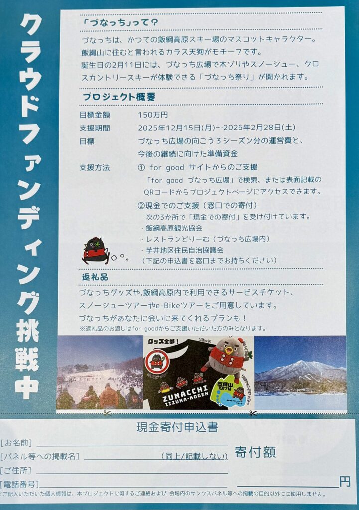 これまでは皆さんからの寄付とボランティアで続けてきましたが、圧雪車の故障などもあり、このままの形での継続が難しくなってきました。そこで、この広場をこれからも安全に続けていくため、クラウドファンディングに挑戦します。