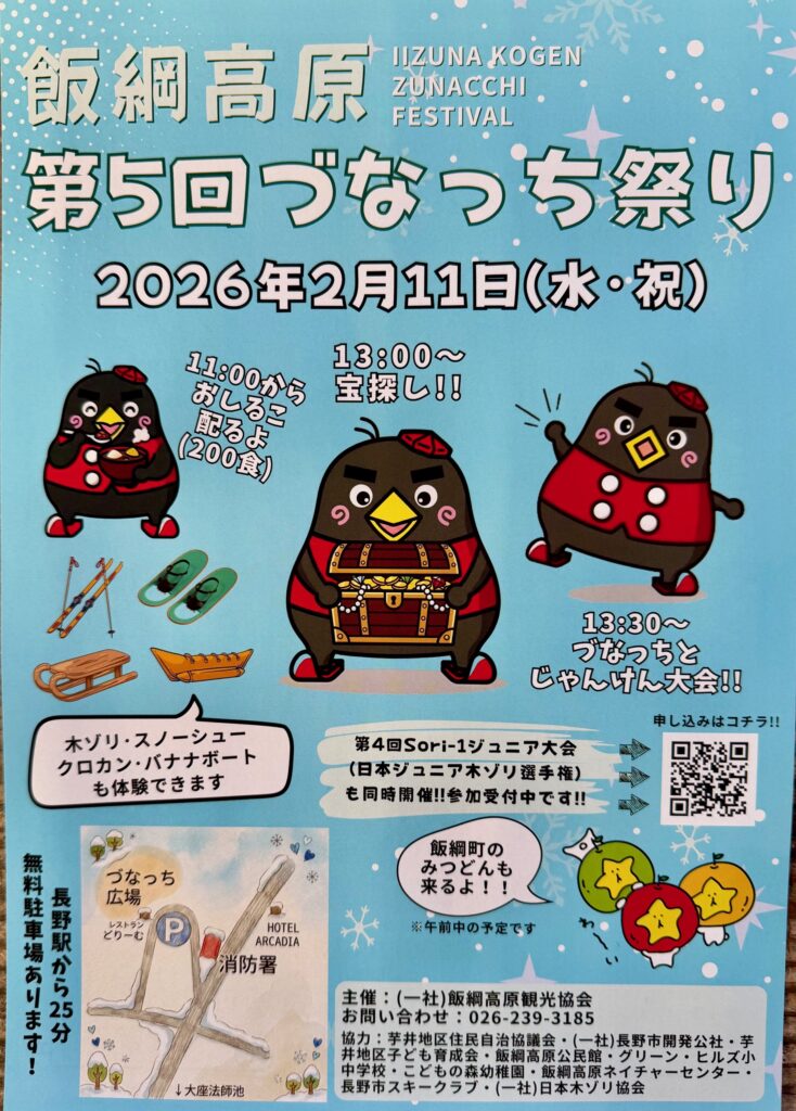旧飯綱高原スキー場を無料開放し皆様に楽しんで頂いているづなっち広場にて、2月11日(水・祝)感謝を込めてづなっち祭りを開催します。