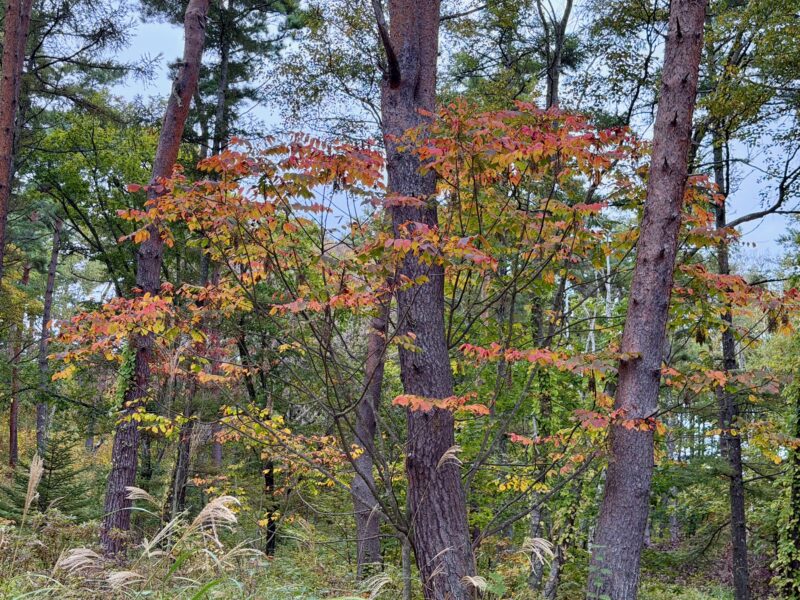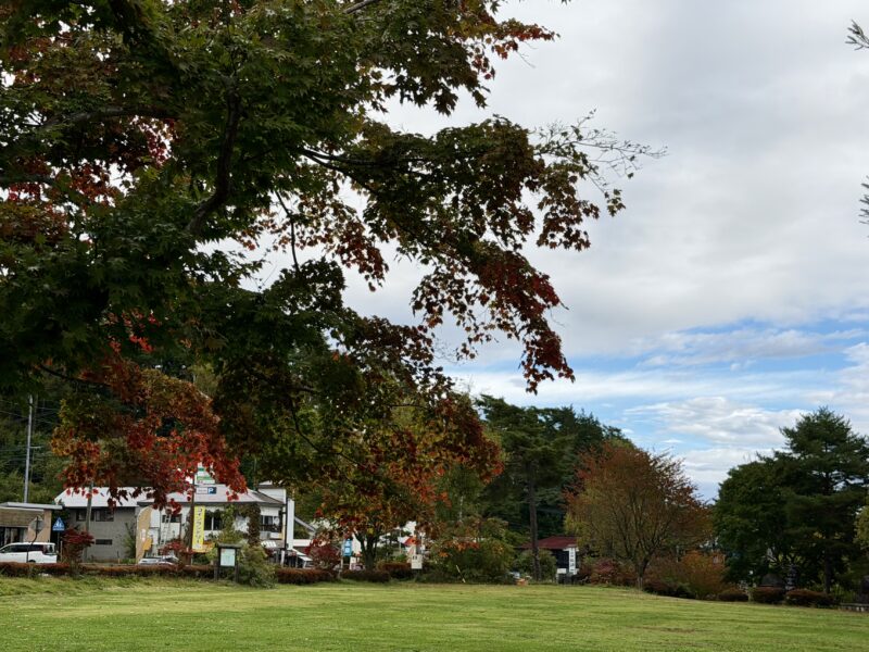 森の駅Daizahoushi 芝生広場にあるカエデは紅葉が進んでいます。