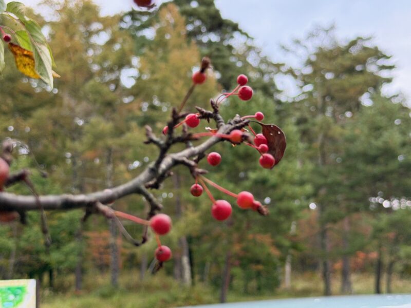 一の鳥居苑地駐車場 ズミの実が赤く色付いていました。