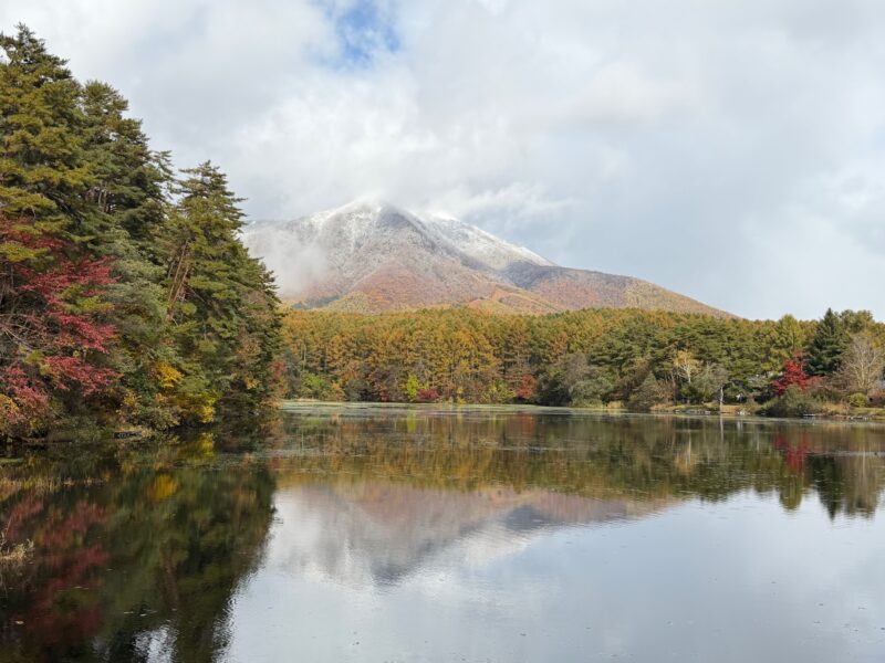 3日はわずかな時間ですが、雪も降りました。飯綱湖から眺めた飯綱山もだいぶ白くなっていました。