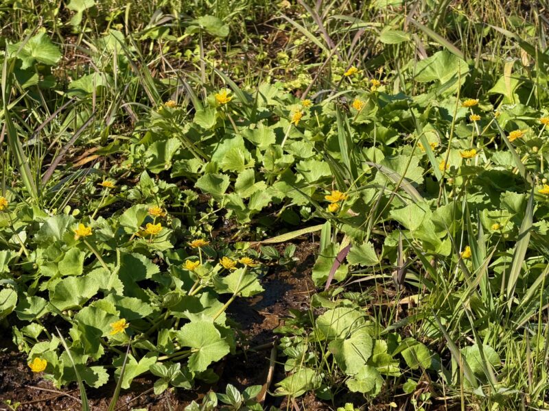 大谷地湿原ではリュウキンカの花がまるで春が来たのかと錯覚しそうなほど黄色の花を咲かせていました。