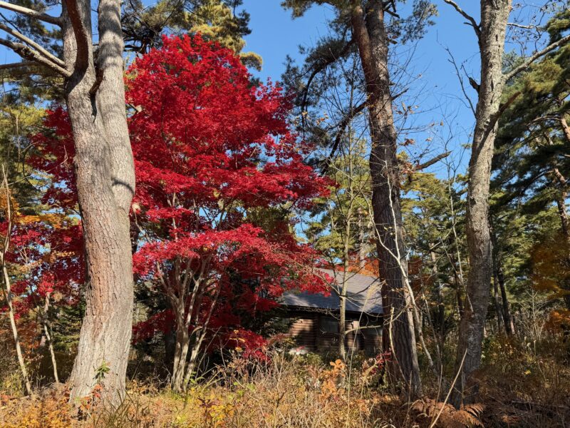 一の鳥居苑地では落葉も盛んですが、まだ綺麗な色づきのカエデなども楽しめます。