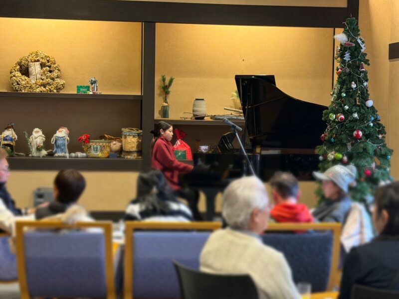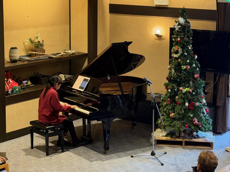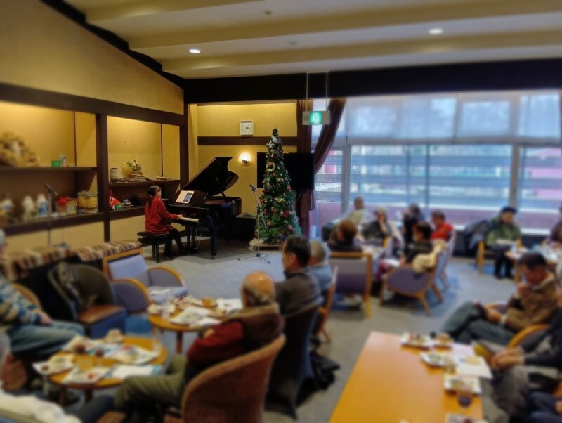 軽食を頂きながら、煌めくピアノが奏でるクリスマスソングやお客様からのリクエスト曲の数々を聴きながら楽しい時間を過ごすことが出来ました。