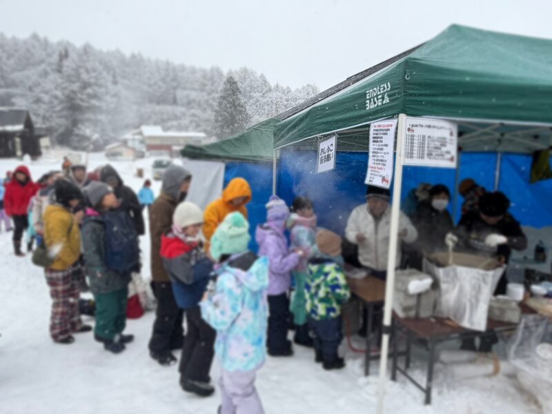 芋井産のお米から作られたお餅が入った温かなおしるこのふるまいは大好評
