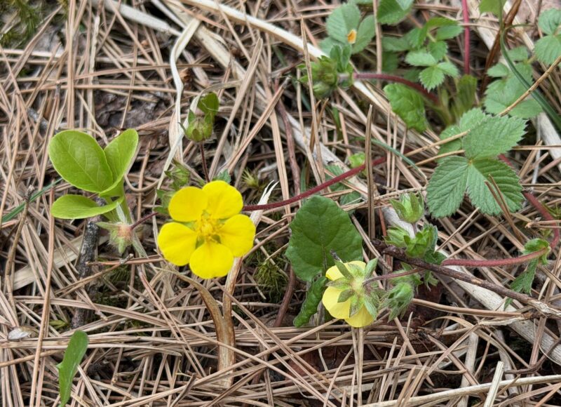 ミツバツチグリでしょうか?1つ2つ咲いているのを見かけました。