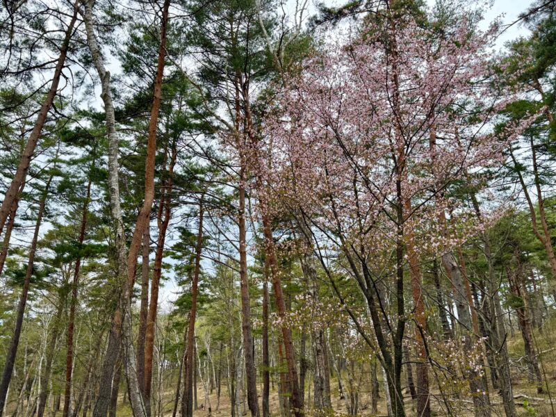 駐車場すぐ上の桜はほぼ満開、ピンク色の花は春が来たことを感じさせてくれました。