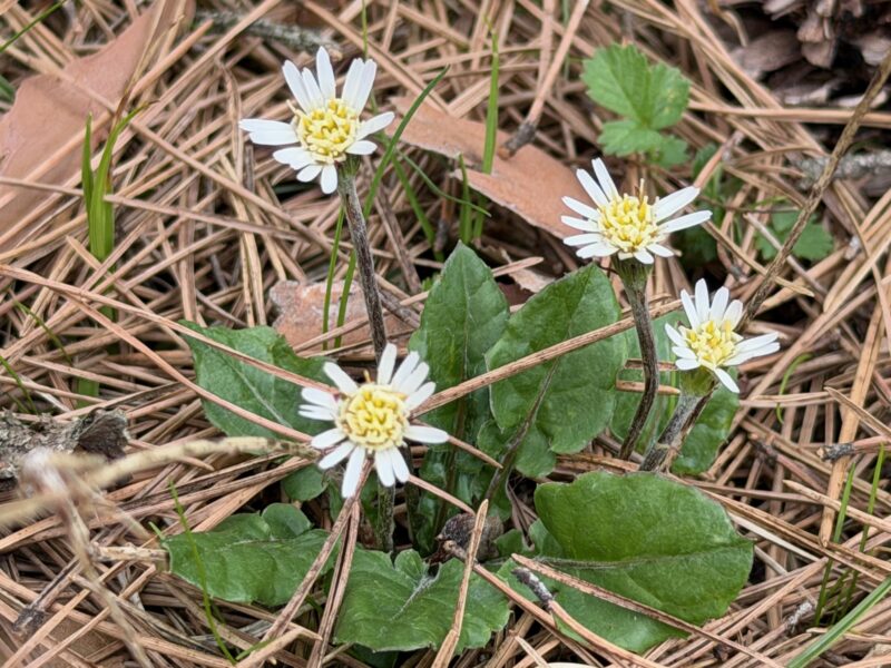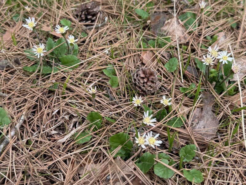 足元には草丈5cmにも満たない小さなセンボンヤリの花の姿